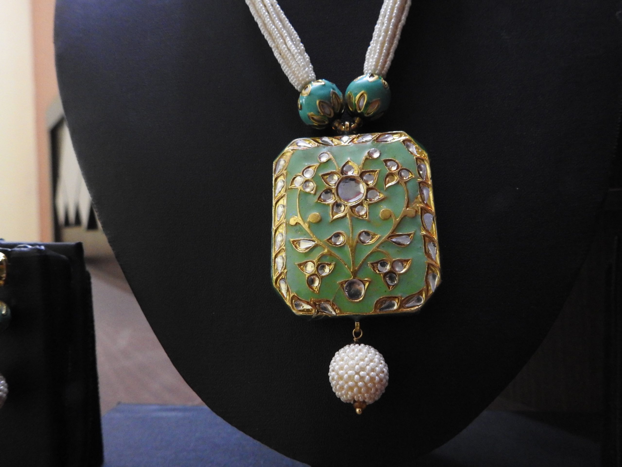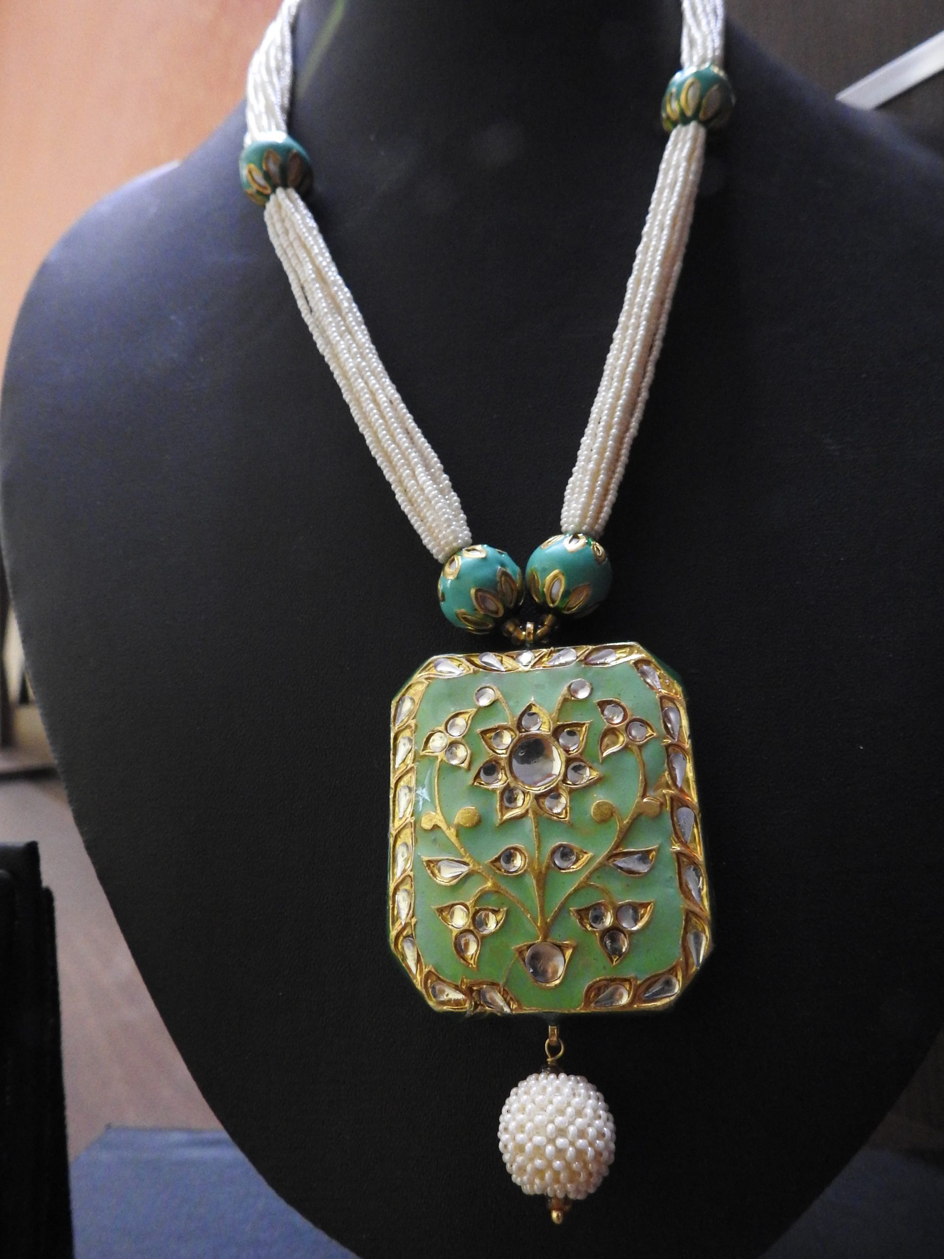 IMITATION KUNDAN MEENA GREEN NECKLACE / ARTIFICIAL KUNDAN MEENA JEWELLERY NEKLACE GREEN